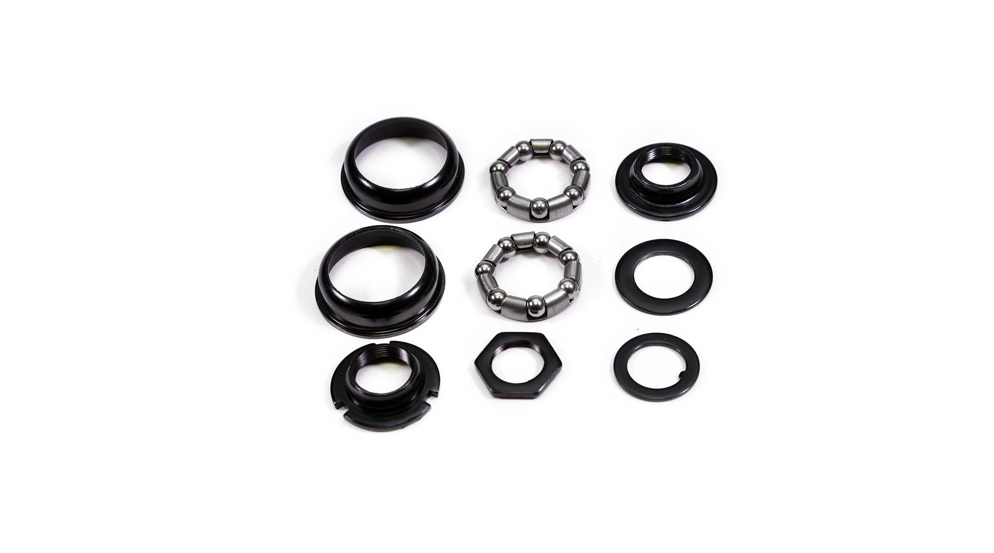 Каретка NECO для односост.шатунов, 9 детал., (подшип. 5/16"х7-2шт, чашка 43,1мм-2шт, кон. лев. 3/4"х24T-LH, кон. прав. 13/16"х24T, шайба, шайба с усом, гайка) черная (50)