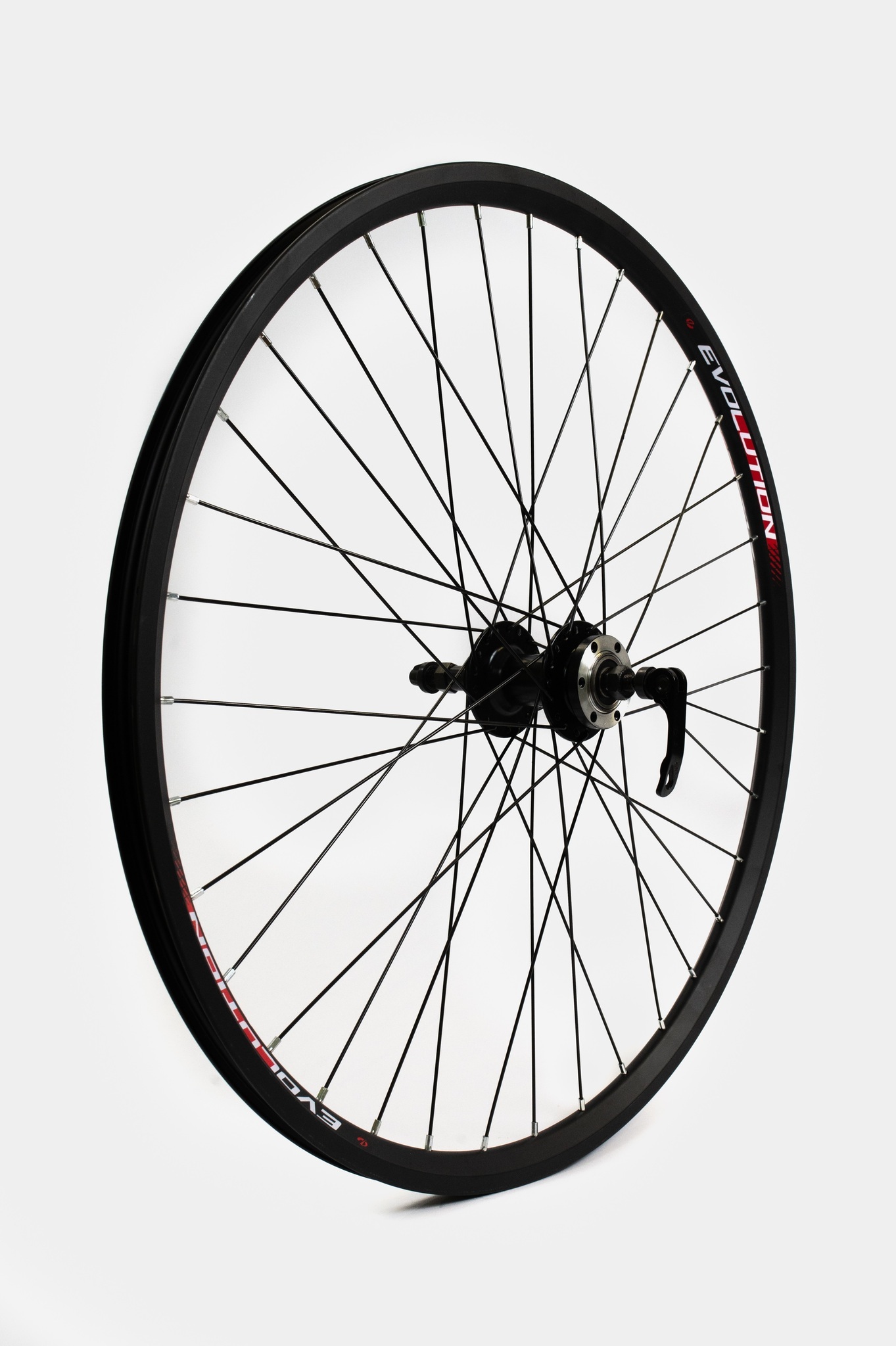 Колесо 26" EVOLUTION зад. ал. дв. чер, вт: ал. ДИСК трещ. эксц. пром. чер. спица чер.