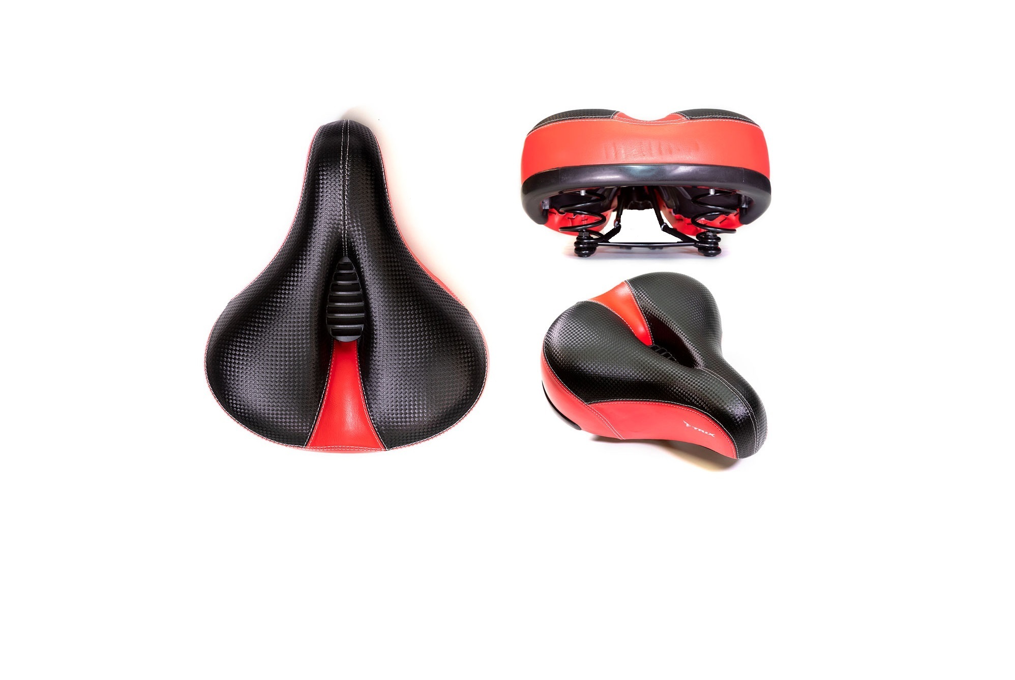 Седло комфорт 265x230 мм, с замком, пружинное, с вентиляцией, черно-красное, дизайн "карбон"
