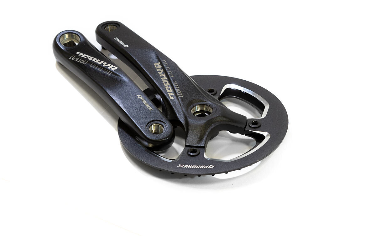 Шатуны-система Prowheel, 1ск., 38 зуб., 1/2"х3/32",сталь с алюминиевой защитой; шатуны 170мм, алюминий, резьба 9/16", под квадрат, черные (10)