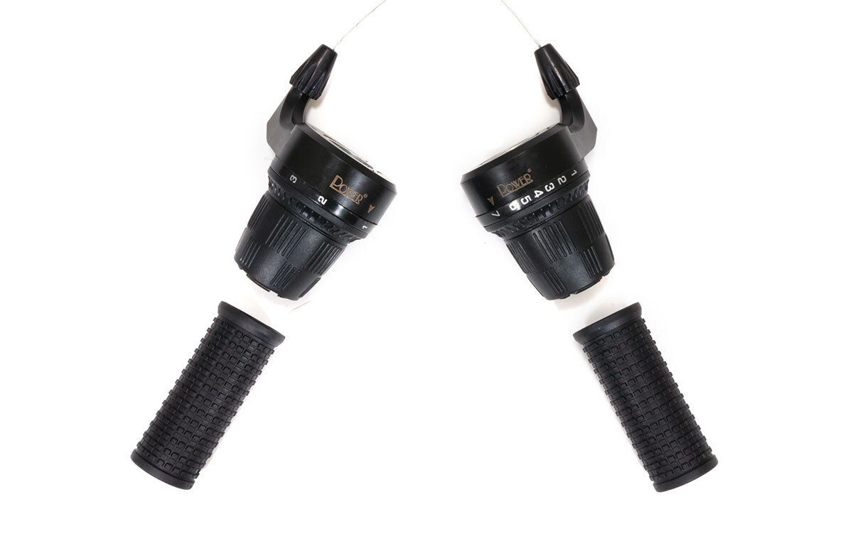 Шифтеры POWER ревошифт, T-50, левый 3 скорости, правый 7 скоростей, тросы, оплетка, грипсы 90мм (50)