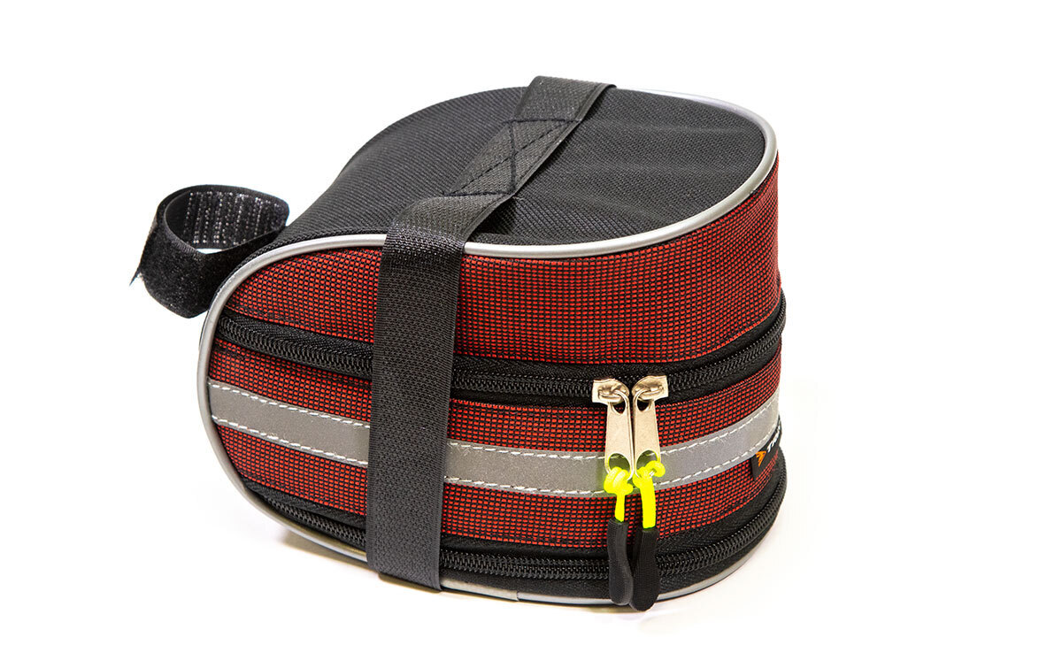 Сумка велосипедная TRIX, крепление под седло, большая, 17х11х10см, водонепроницаемая, светоотражающие вставки, серо-красная