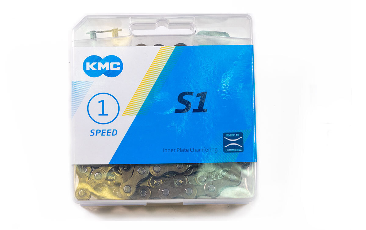 Цепь KMC S1 для 1 скорости, 1/2"х1/8", 112 звеньев, пин 8.7мм, с замком, коричневая (60)