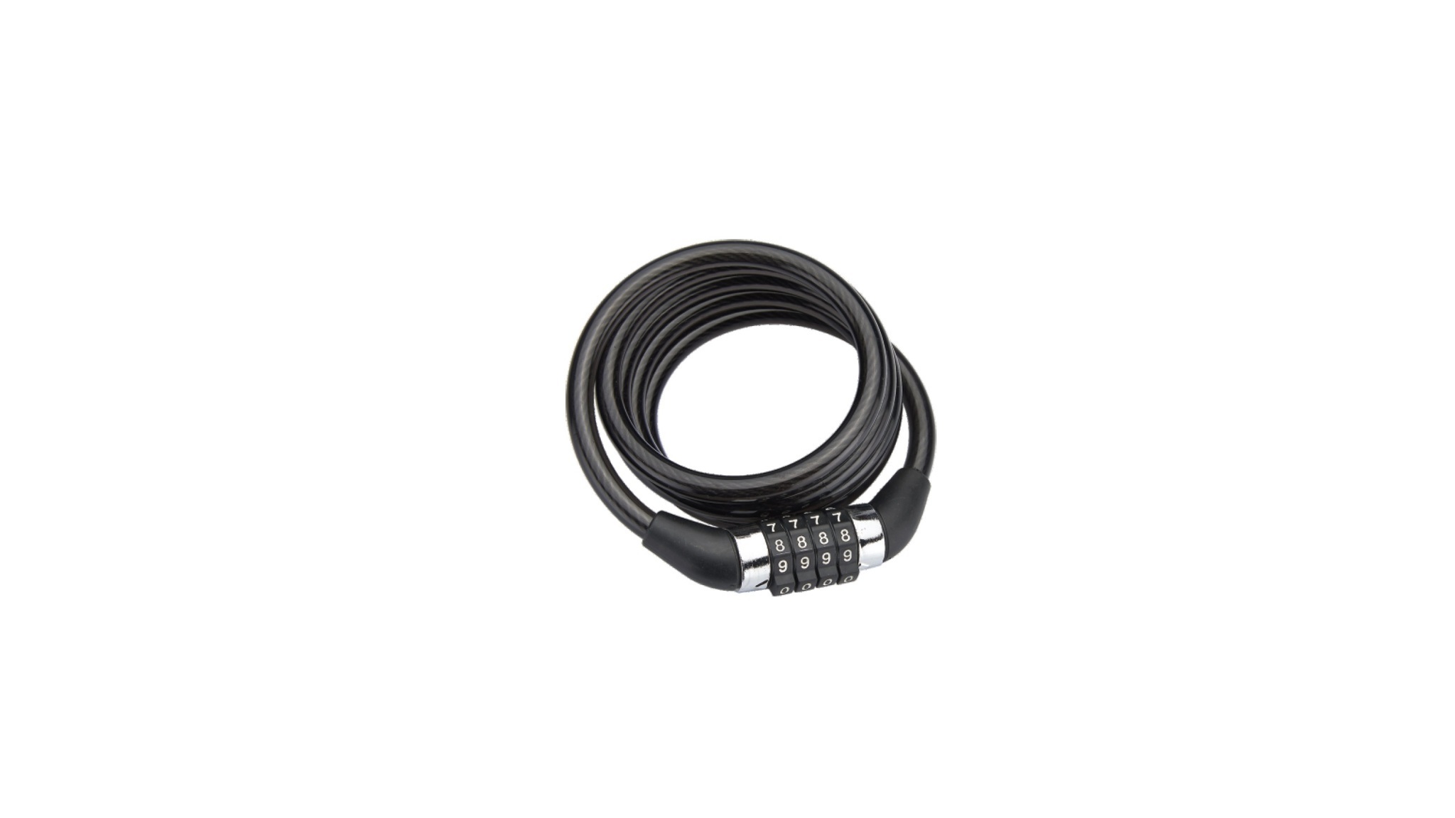 Замок велосипедный TRIX, трос стальной, кодовый 8х1200мм, в пластиковой оболочке, черный